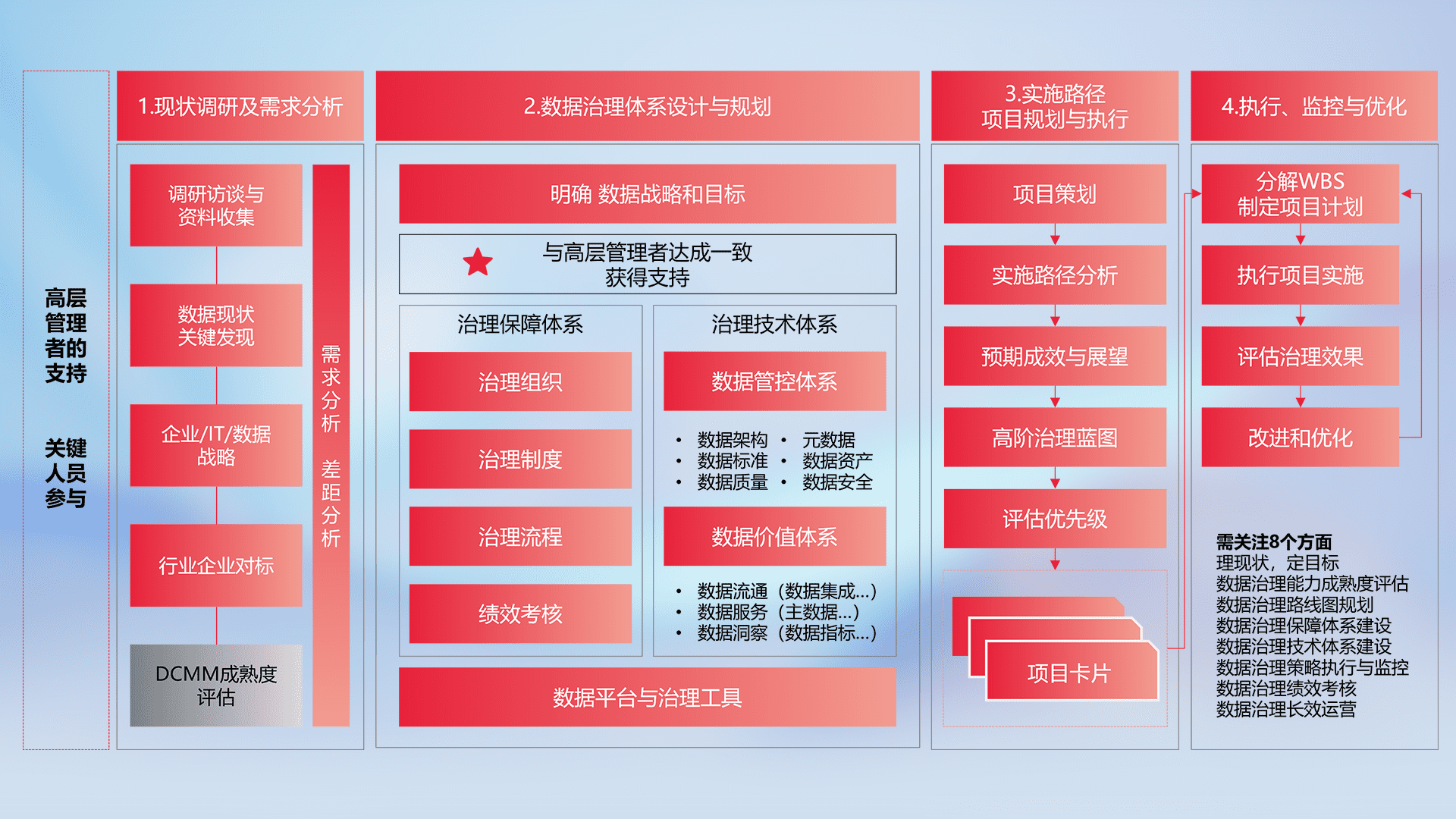 制定并执行统一的数据标准,,规范数据定义和格式,,,消除冗余和不一致性,,实现跨部门和跨系统的数据一致性,,,,为企业提供标准化的数据基础。。